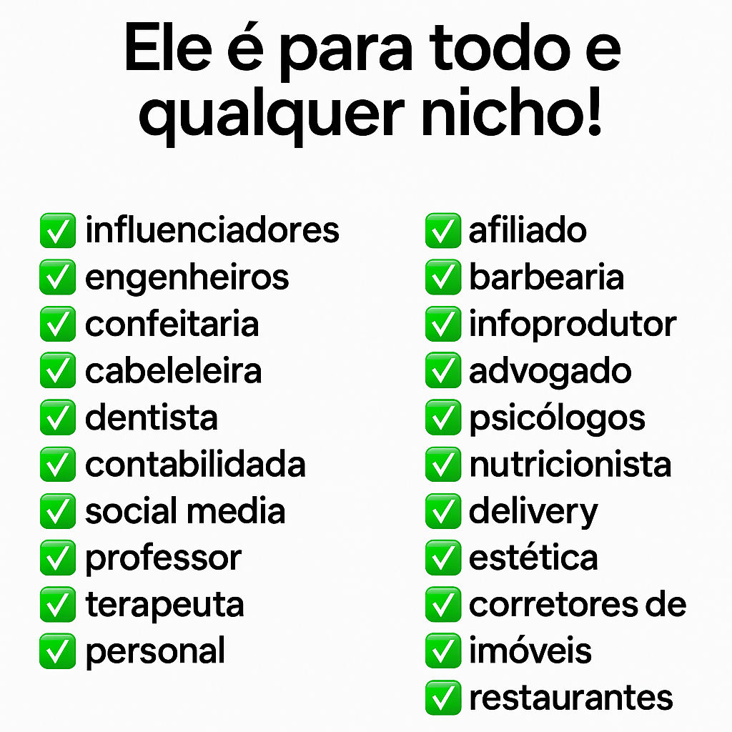 Sim, o MeuLink funciona para qualquer pessoa e para qualquer nicho, com templates editáveis e personalizados para você copiar e colar.