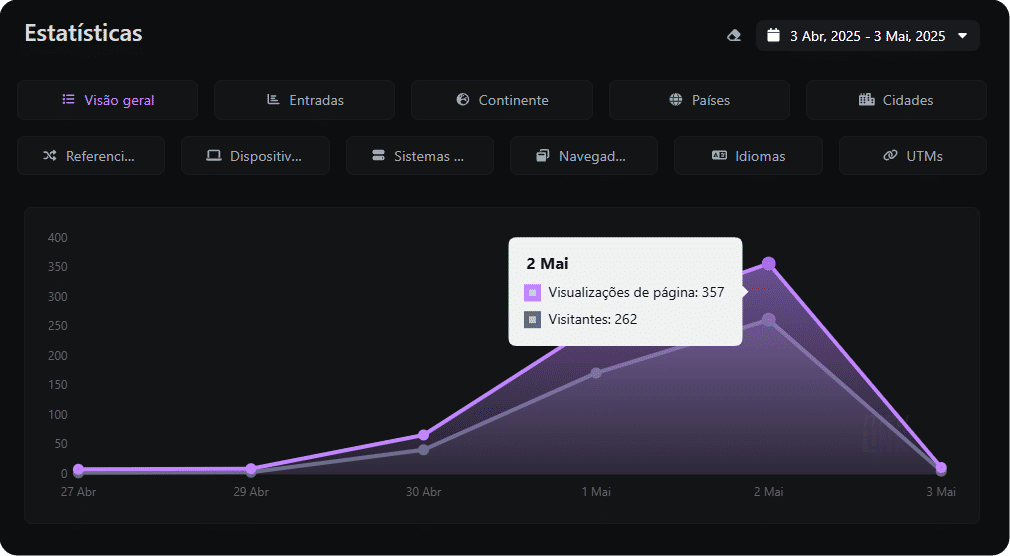 Estatísticas detalhadas do seu link